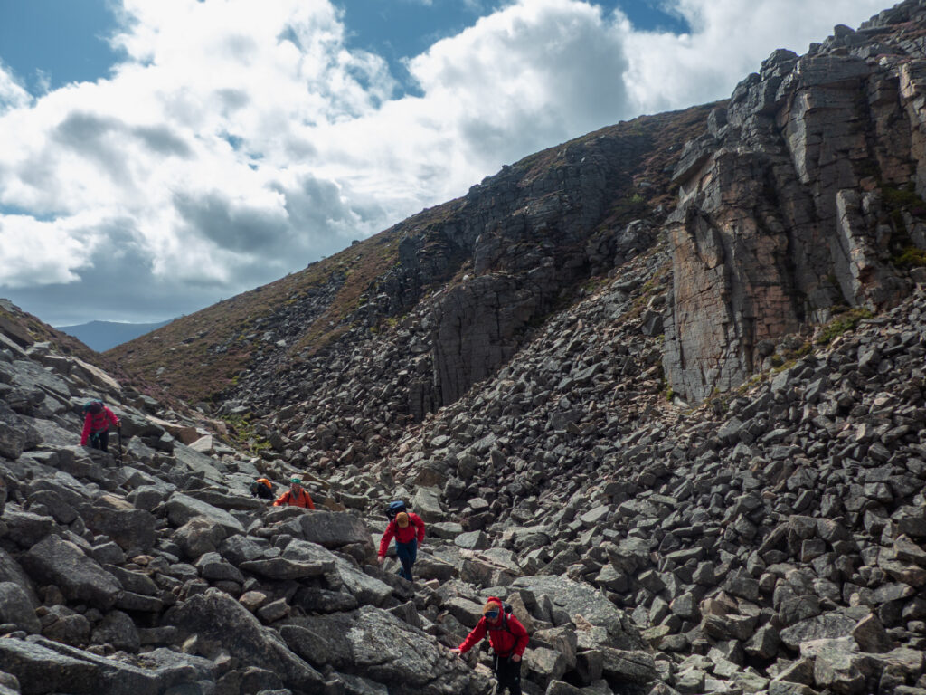 Our Ben Macdui trip saw high winds hinder progress, with the group heading for the top deciding to turn back from Cairn Lochan, head past Lurcher’s Crag and finally get a sheltered break in the Chalamain Gap. A second group made it over and down Coire Raibert to the Shelter Stone, then back via Coire Domhain. All back in time despite the tough conditions so a nice break at the pub in Aviemore before the coach headed back to Aberdeen.