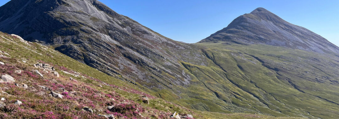 Off we headed early on Saturday (the hottest day in Scotland for 2 years) and cycled to the start point of the Paps challenge. Midges were luckily mostly absent but replaced by hoards of skin slicing clegs drawing blood with each hungry bite! Superd views were soon being enjoyed with luckily a decent Hebridean breeze high up. We managed all 3 hills (two Grahams and a Corbett) with plenty of scree/boulder scrambling and up and dooning to be had. The elder statesmen of the group (me) ended up with a touch of heat exhaustion but the other 3 kept me going with bribes of buying the 1st round at the hotel and we made it back (just) to the campsite for a welcome shower and crawl to the Hotel for some well earned beer and food.