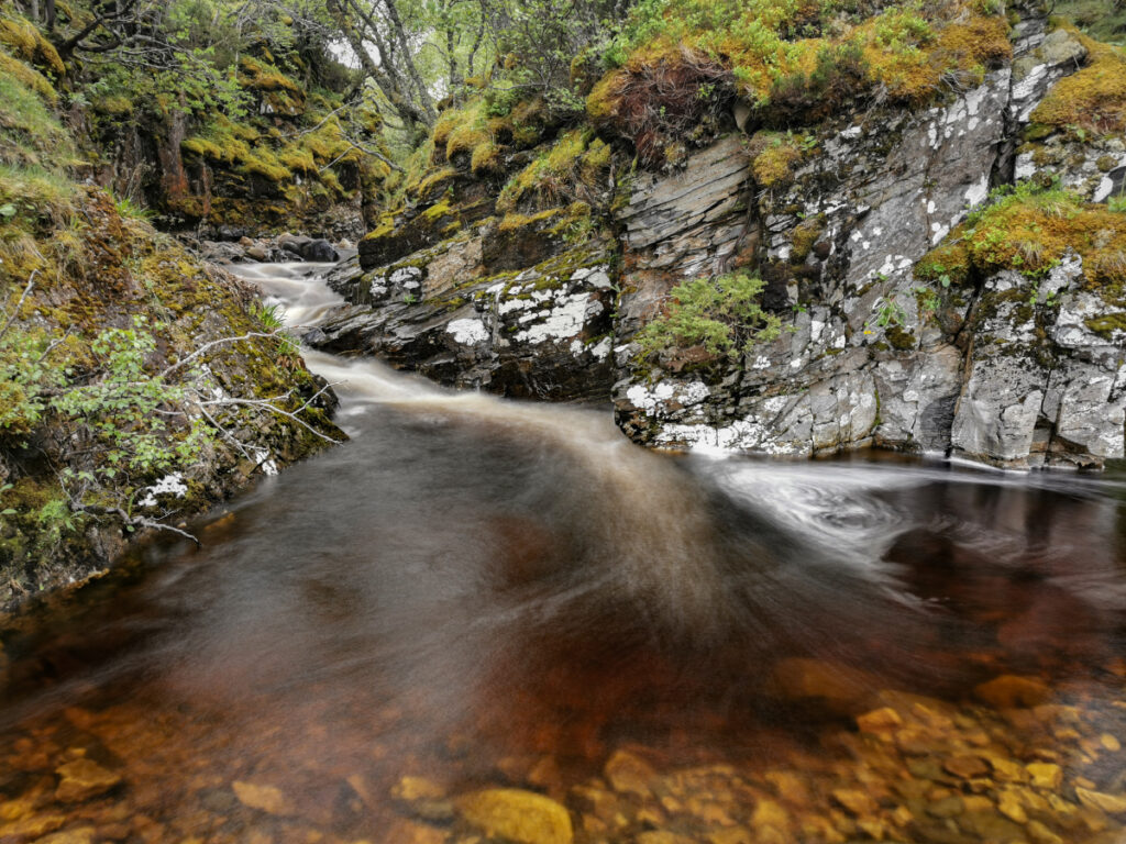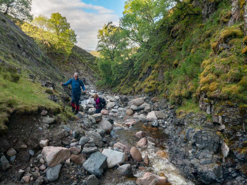 We set off from Corgarff on Friday heading west, serenaded by the glen’s lapwings. At Laggangauld our resident botanist enjoyed a flush of wildflowers before we headed south along the Builg burn, first exploring a small gorge and then making camp. We had an evening jaunt up another gorge on the Allt Gaineimh.