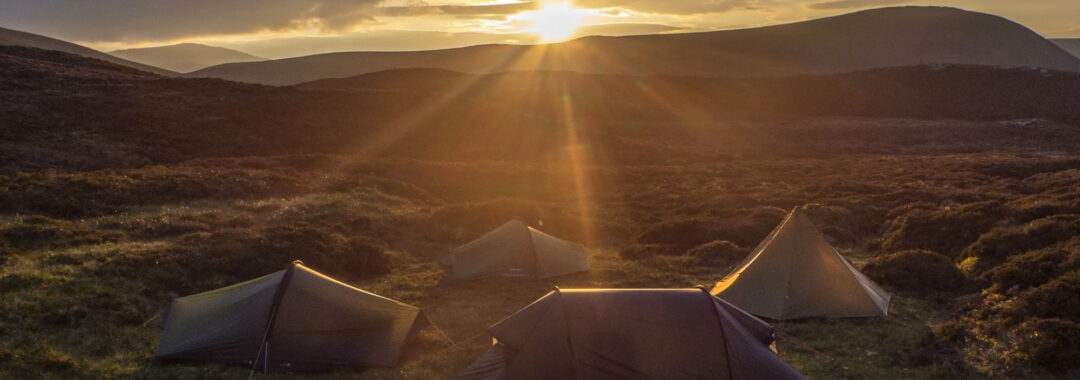 The next day we explored some of the large rocky outcrops on the north-east side of Ben Avon before descending to the rarely visited Lochan na Gabhar. We’d though to camp here next, but with unsuitable conditions continued west eventually finding a good spot amongst the glacial lumps below Sron na h-lolaire just before sunset.