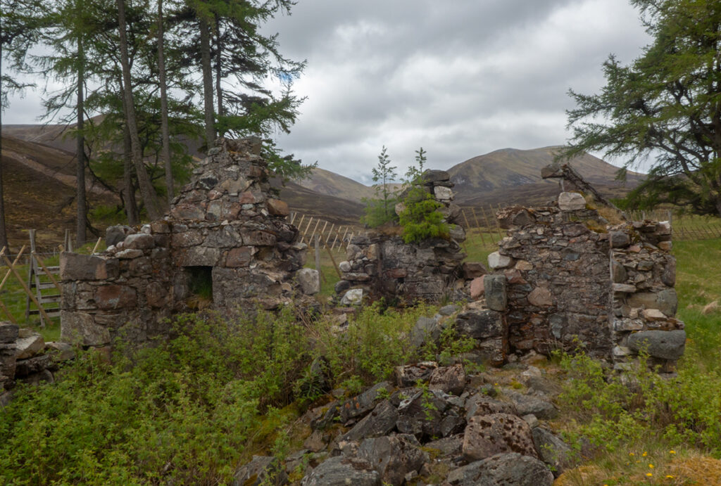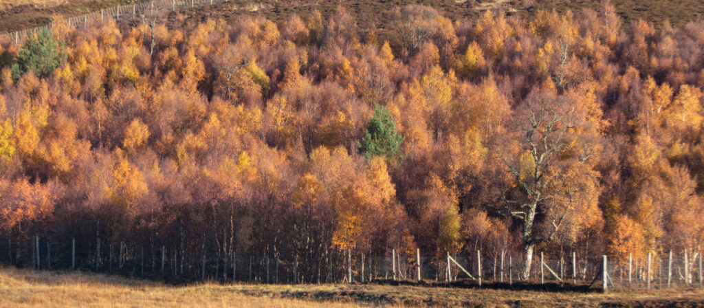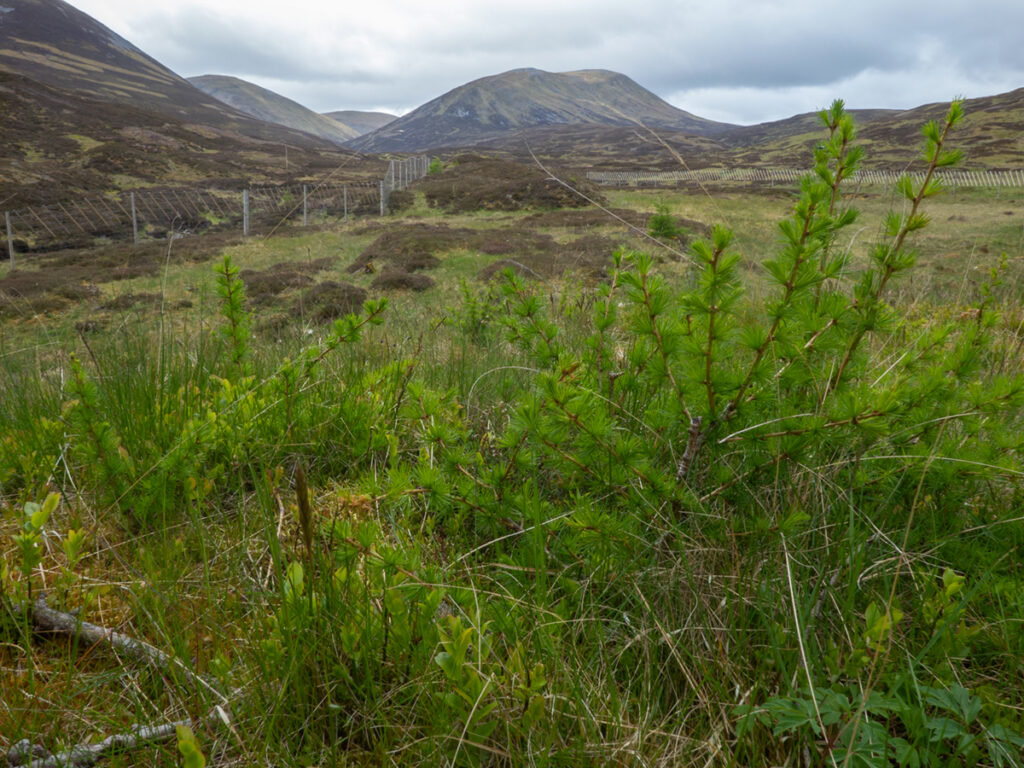 In 2015, an area further along Glen Ey was fenced off against deer at Altanour where the ruin of an old lodge stands (at NO 083823). This enclosure has seen slower progress, possibly with it being further from seed sources.